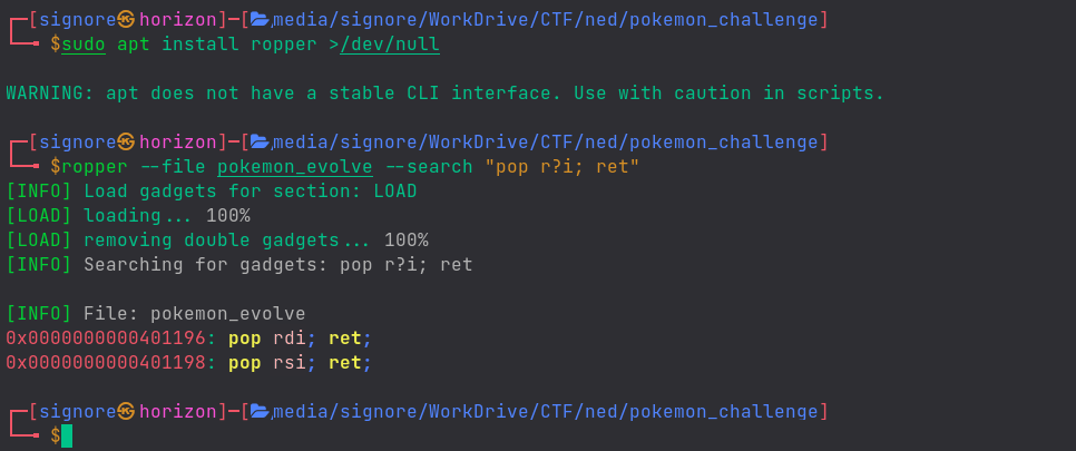 We can find the memory address of the hacked function with gdb and ROP gadgets with ropper.