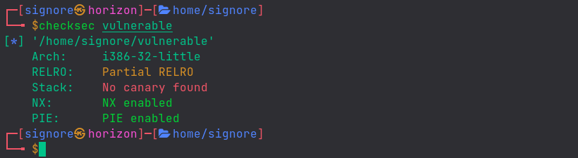 gcc -m32 -fno-stack-protector vulnerable.c -o vulnerable